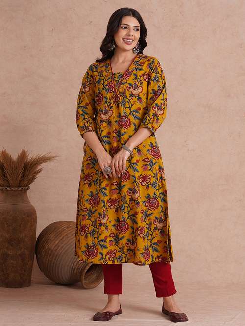 - Grab this beautiful kurta made up of cotton fabric featuring square neck designs.