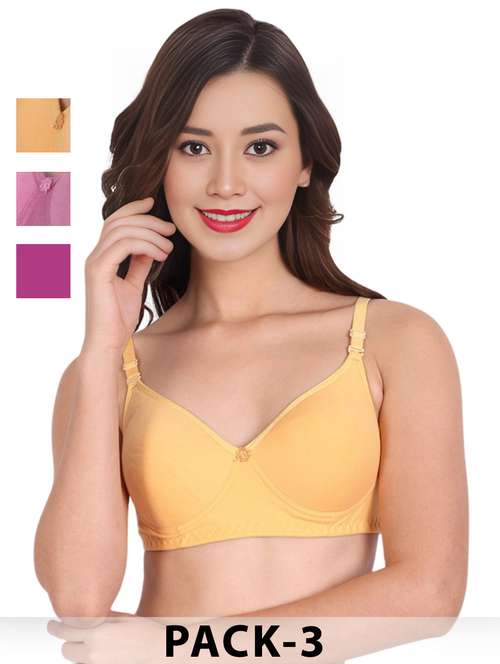 Liigne Women Everyday Padded Bra (Pack Of 3) - Made of Pure Cotton Full Coverage Non Wired Pushup Soft Cup for T-Shirt Saree Dress Sports Garment for Daily Use Everyday