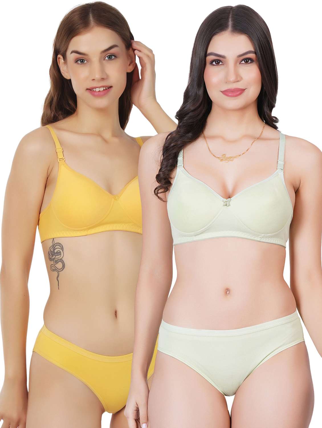 Liigne Women Everyday Padded Bra Panty Set (Pack Of 2) - This Lingerie Set Made of Pure Cotton