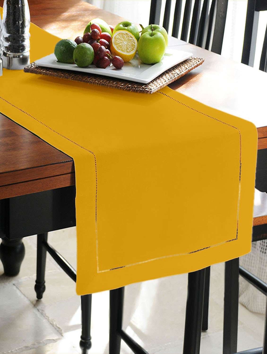 - » lushomes lemon chrome unidyed holestitch runner with 3 cms hemmed (double border) holestitch on all 4 sides