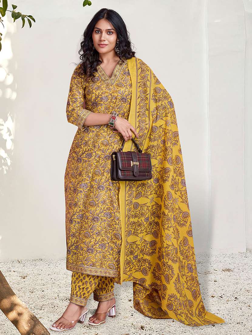 - Find gorgeous sets of ethnic wears in trending designs in yellow colors suitable for casual wear of occasions.