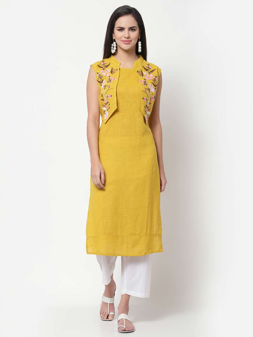 - » yellow solid straight kurta