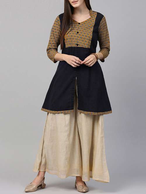 black cotton a-line kurta - 14597102 - Very Small Image - 1