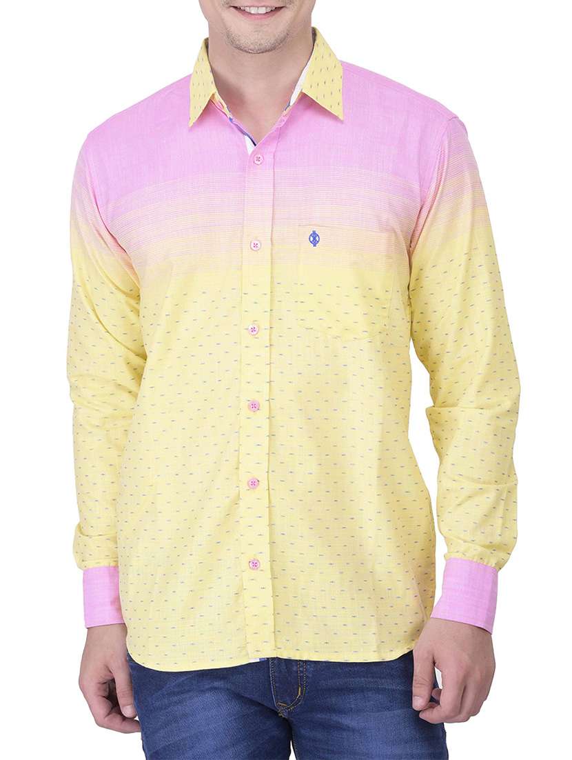 - » yellow and pink printed ombre cotton casual shirt