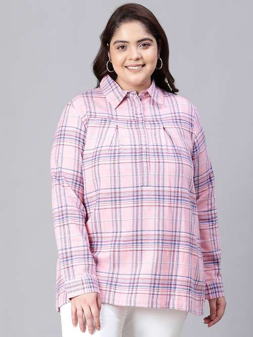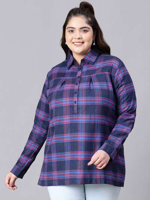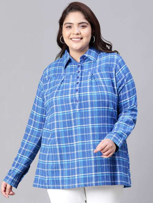- » plus size checkered collared straight top