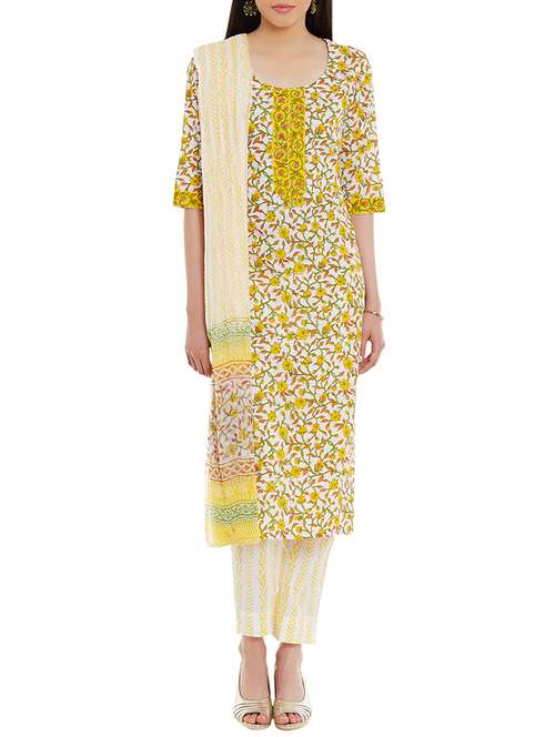 yellow cotton unstitched suit