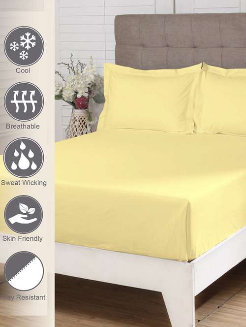pizuna cotton 400 thread count solid long staple cotton satin double size flat sheet with 2 pillow covers mellow yellow - 18471135 - Very Small Image - 1