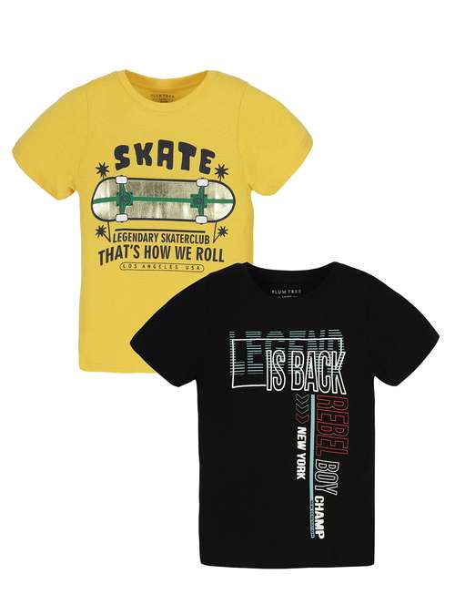 boys round neck printed set of 2 regular t-shirt