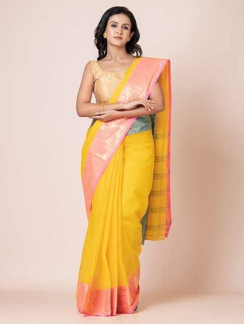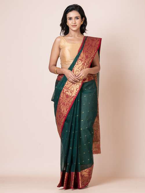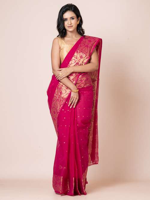Puku Pure Cotton Tant Tangail saree with Zari Work without blouse fabric
