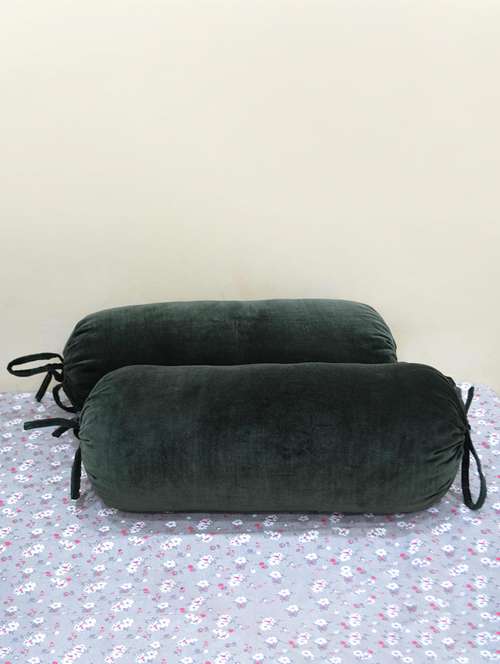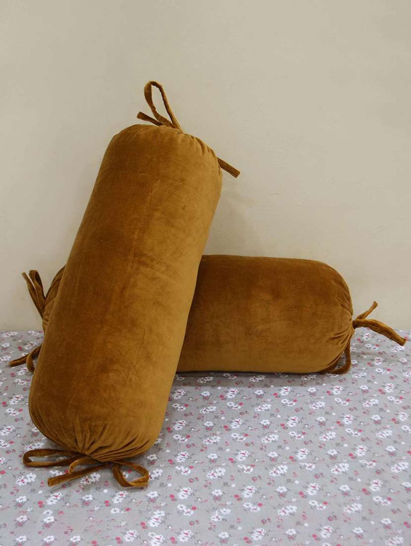 Bolster Cover (set of 2 pc) in cotton velvet fabric. Tie strings on both sides. High quality fabric