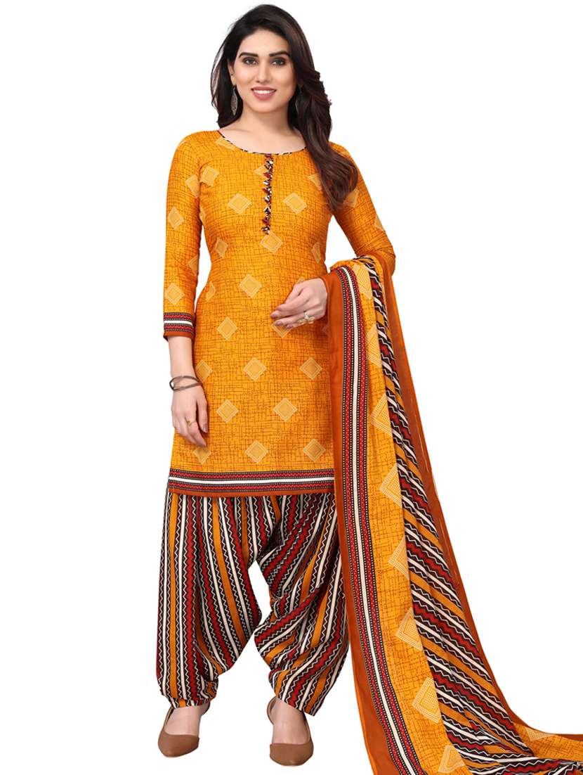 - Look ultra gorgeous in unstitched suits from Rajnandini and grab these beautiful suits in mustard colour.