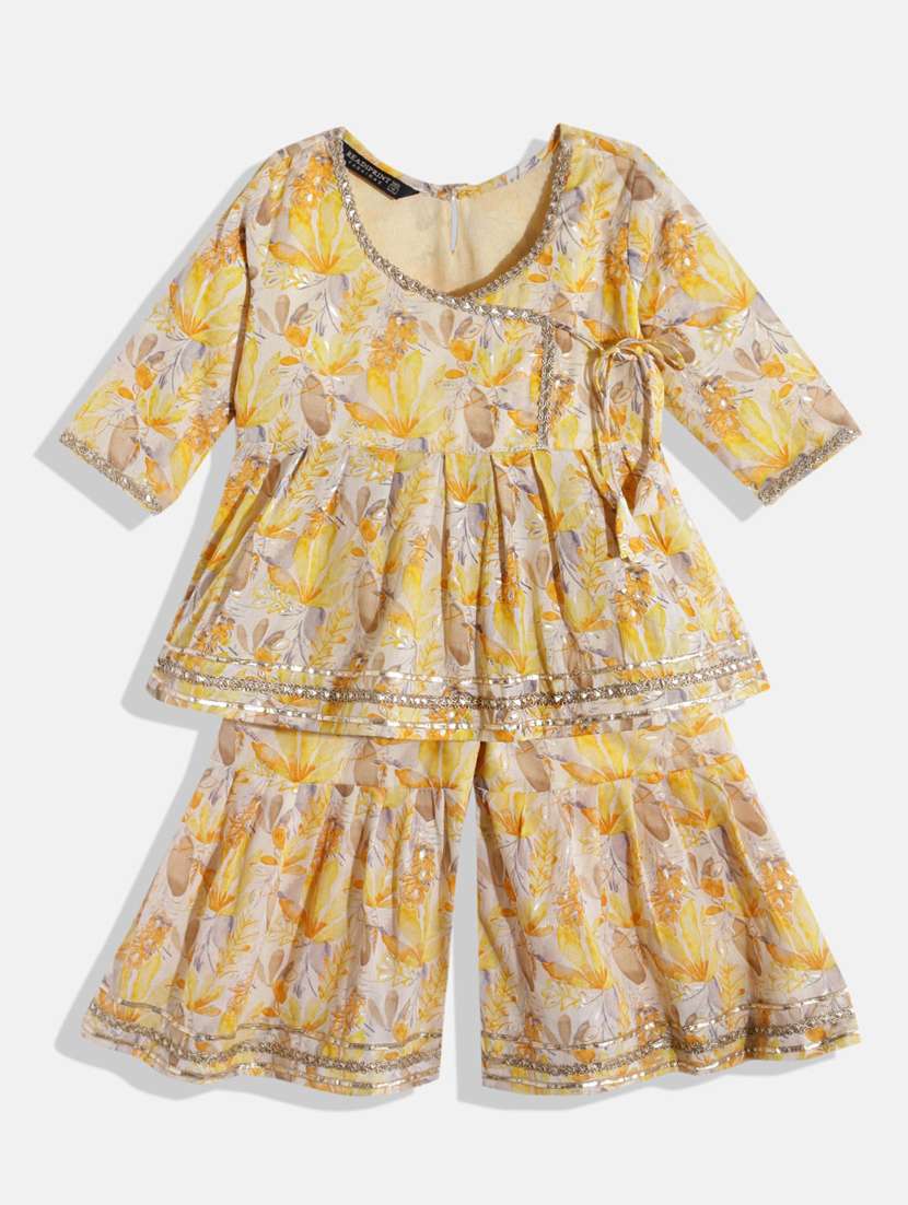 yellow cotton kurta sharara suit set