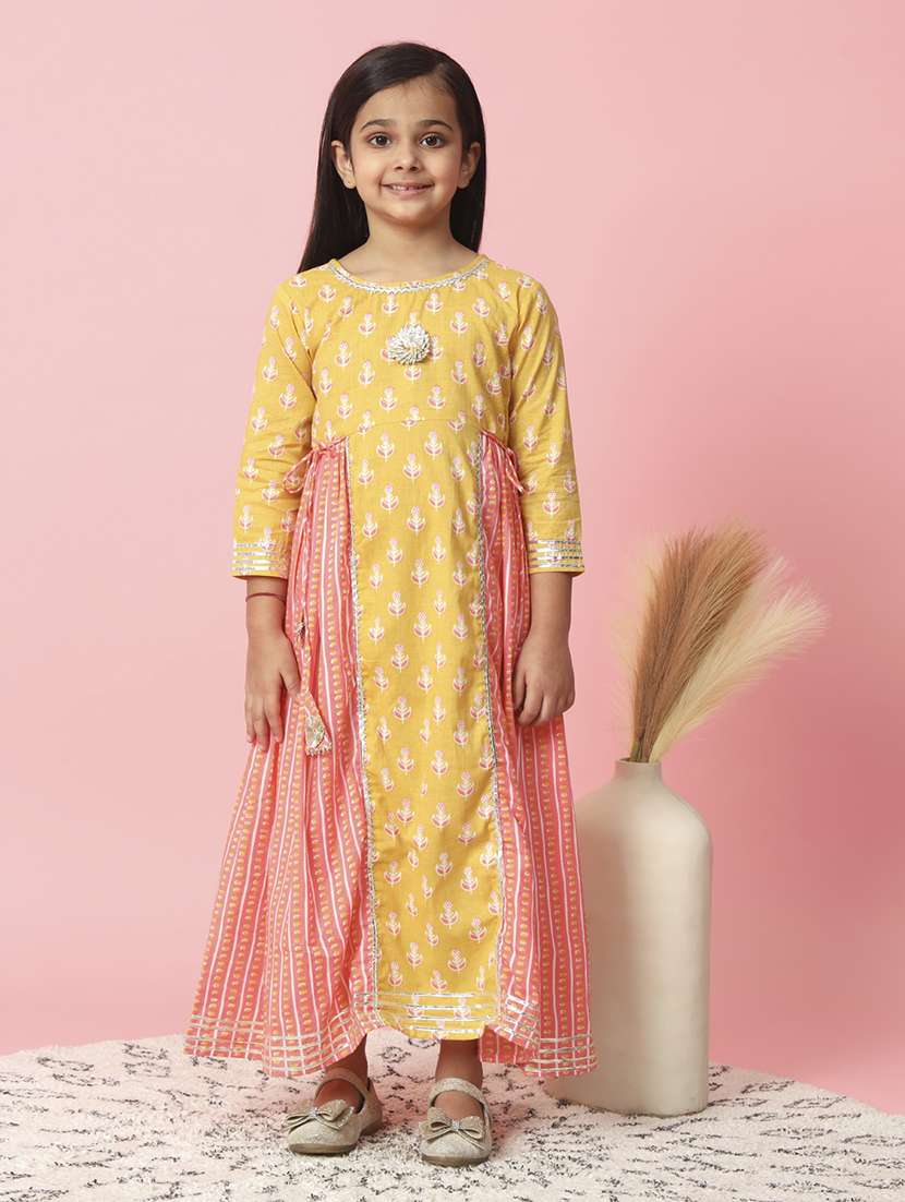 - » girls yrellow round neck party gown