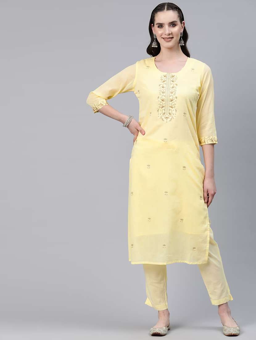 - Find gorgeous sets of ethnic wears in trending designs in yellow colors suitable for casual wear of occasions.
