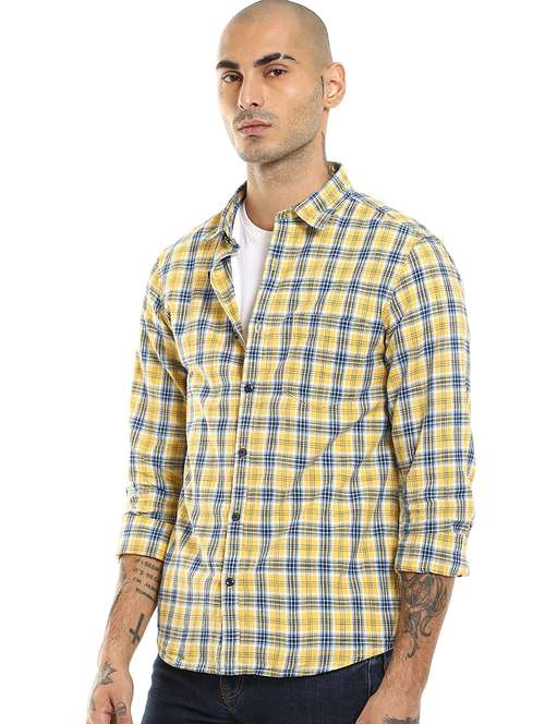 yellow checkered casual shirt