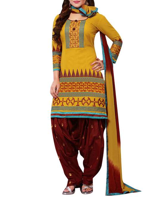 yellow cotton unstitched suit - 11276475 - Very Small Image - 1