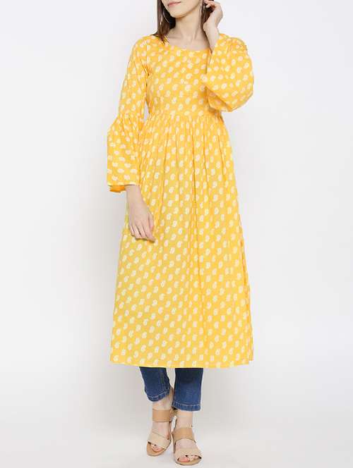 - Grab this beautiful kurta made up of cotton fabric featuring round neck designs.