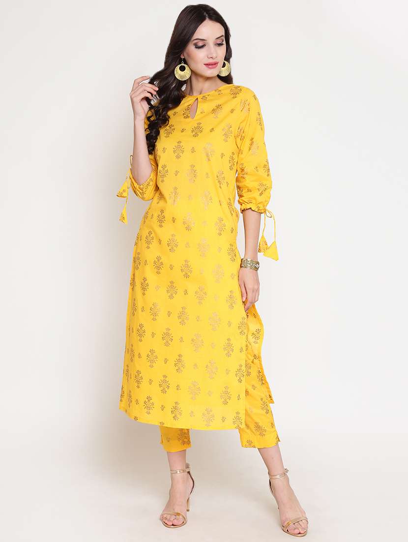 - Grab this beautiful kurta made up of cotton fabric featuring key hole neck designs.