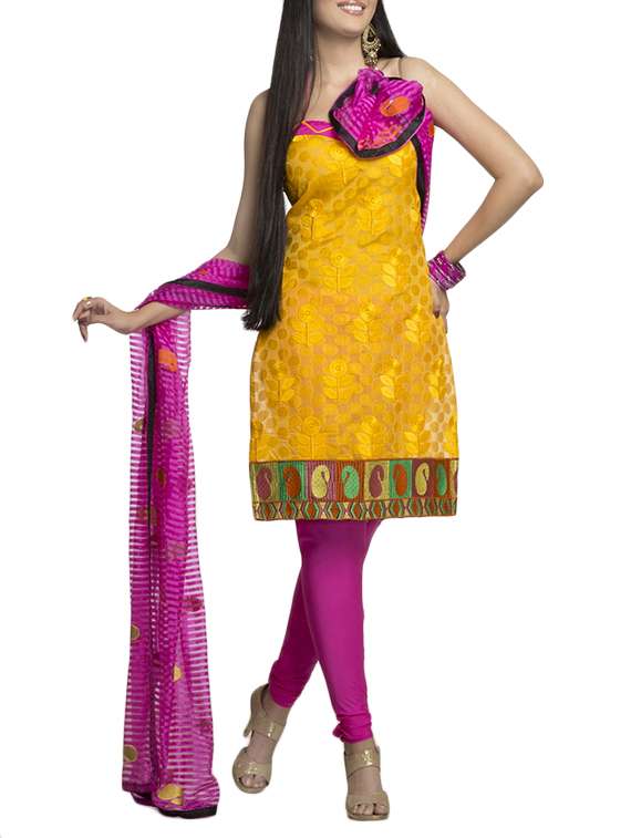 - Look ultra gorgeous in unstitched suits from SHAH FABRICS and grab these beautiful suits in yellow colour.