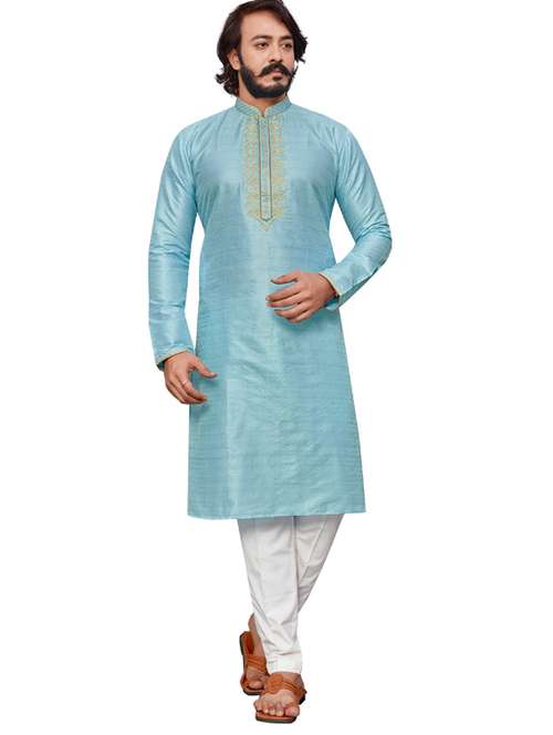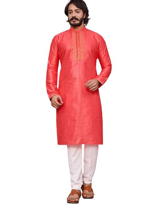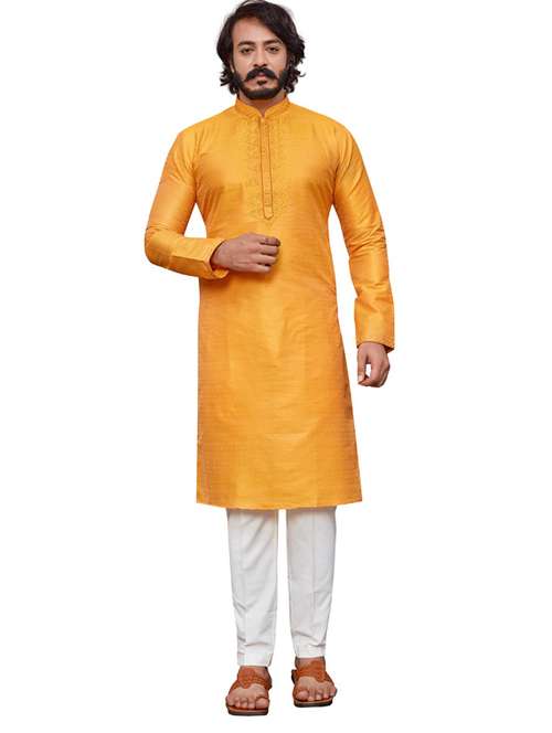 Mustard Cotton Silk Solid Embroiderd Ethnic Wear Mens Kurta set