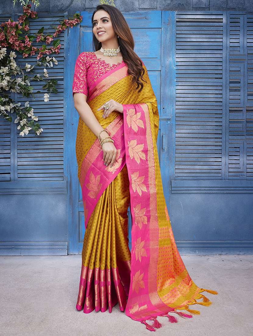 women self design contrast border saree with blouse