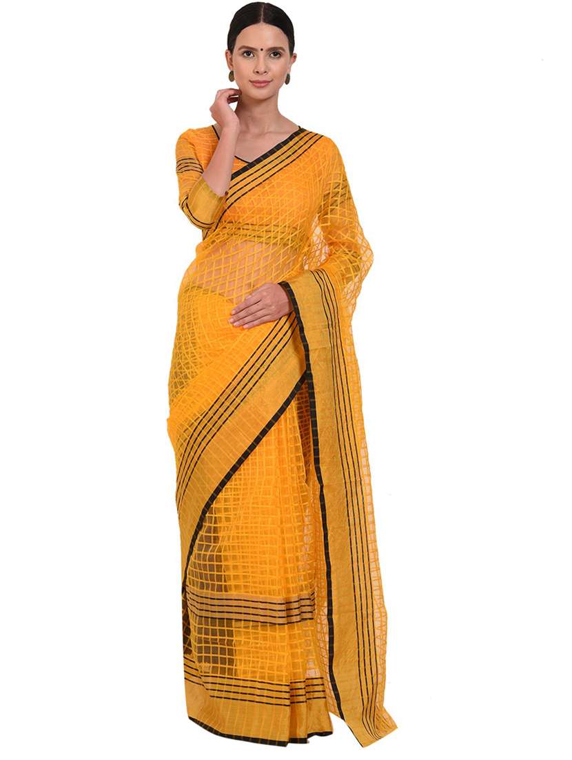 contrast bordered woven saree with blouse - 19427177 - Very Small Image - 1