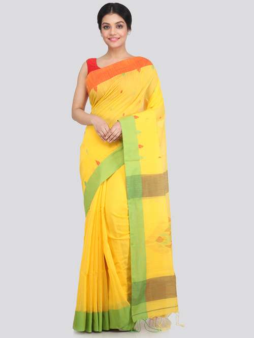 - » yellow cotton silk handloom saree with blouse