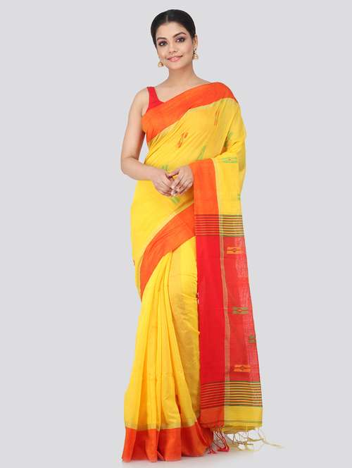 - » yellow cotton silk handloom saree with blouse