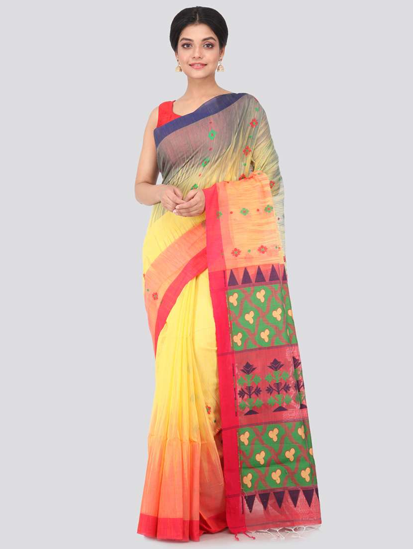yellow cotton silk handloom saree with blouse - 18384785 - Very Small Image - 1