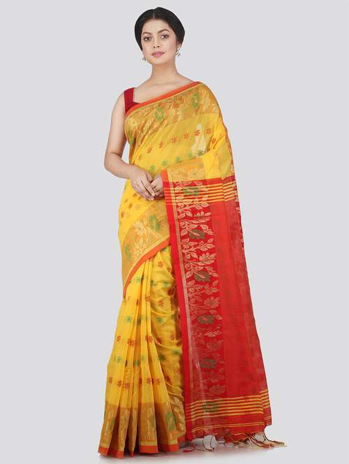 - » yellow cotton silk handloom saree with blouse