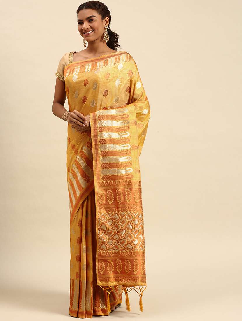 - » women's self design gold colored saree with blouse