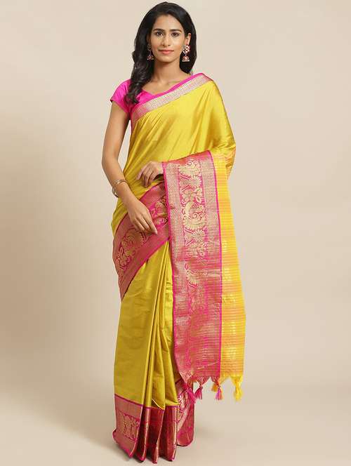 - » women's bordered yellow colored saree