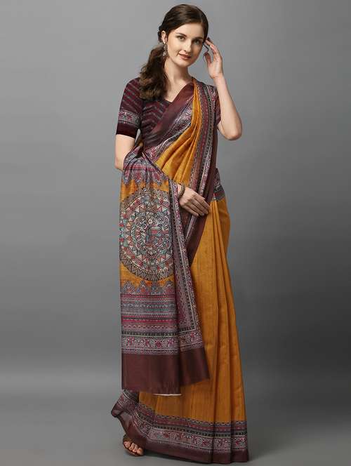 - » mustard printed saree with blouse
