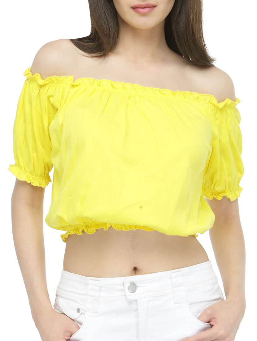 - » yellow cotton bardot crop top