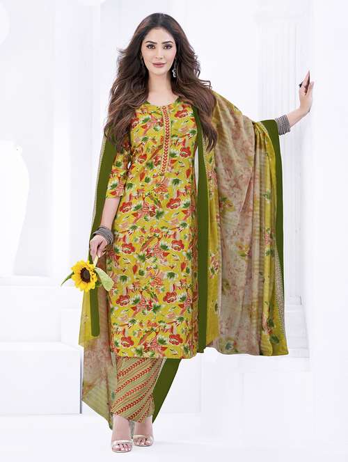 - Find gorgeous sets of ethnic wears in trending designs in lime colors suitable for casual wear of occasions.
