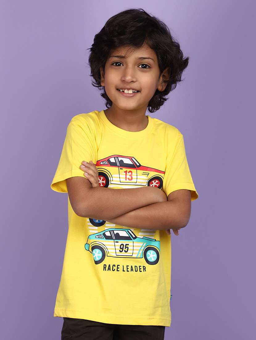 - » yellow cotton front print t-shirt