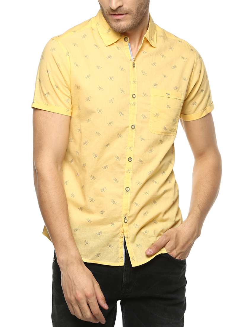 - Be a head turner by wearing this casual shirt from Spykar and grab it in yellow colour.