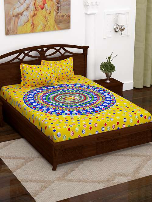- » 152 tc 100% cotton yellow floral 1 double bedsheet with 2 pillow covers