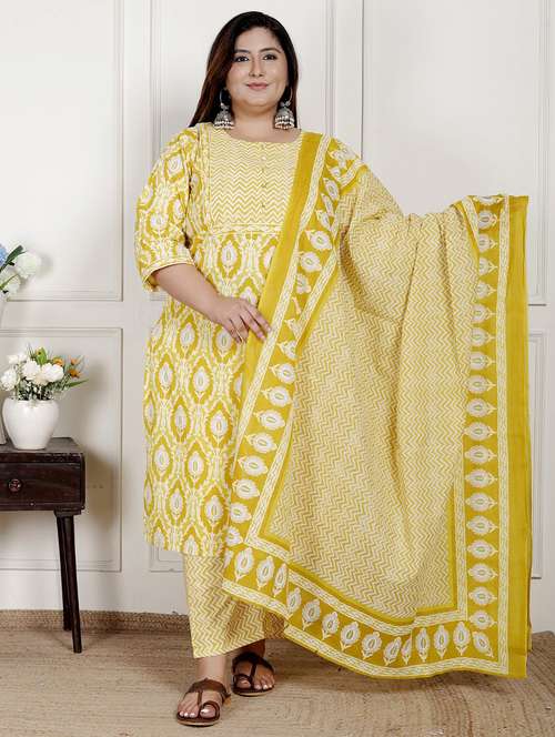 - Find gorgeous sets of ethnic wears in trending designs in yellow colors suitable for casual wear of occasions.