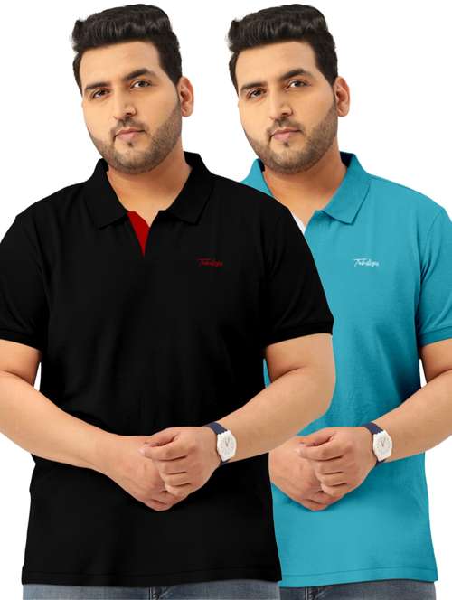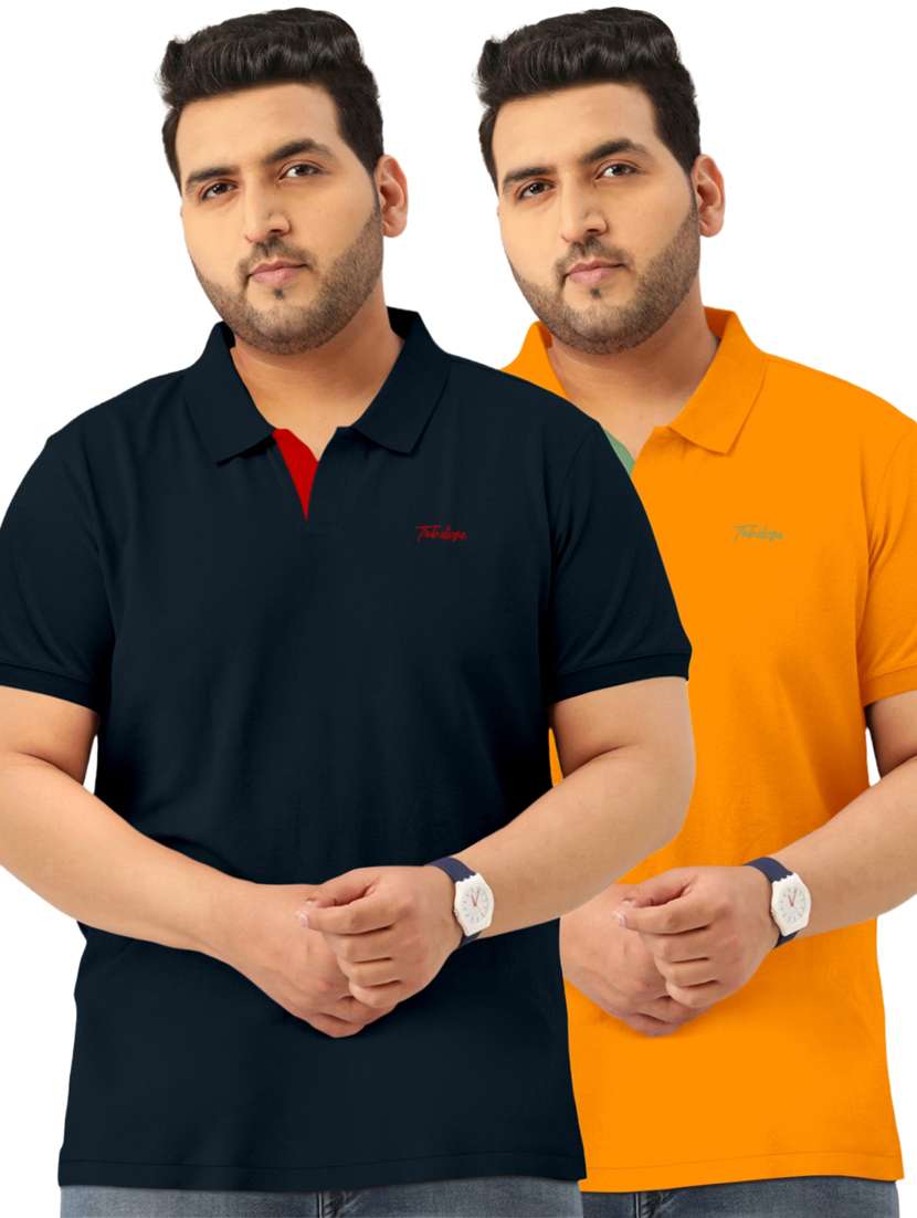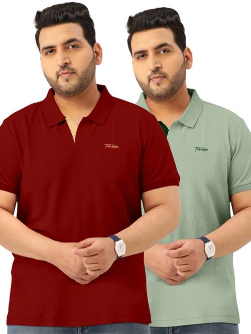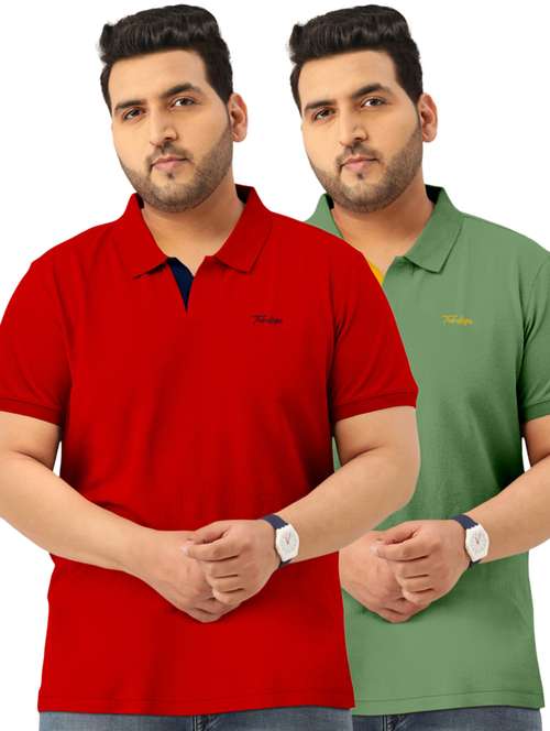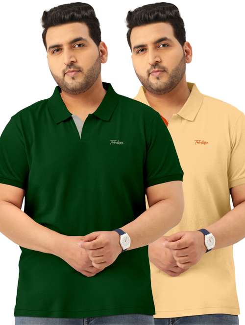 - » men pack of 2 multi colored solid regular fit polo t-shirt