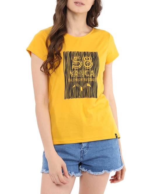 yellow printed cotton regular tee