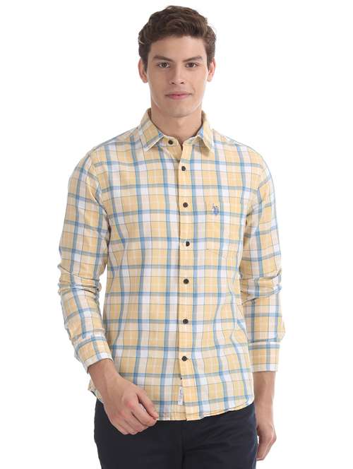 yellow checkered casual shirt