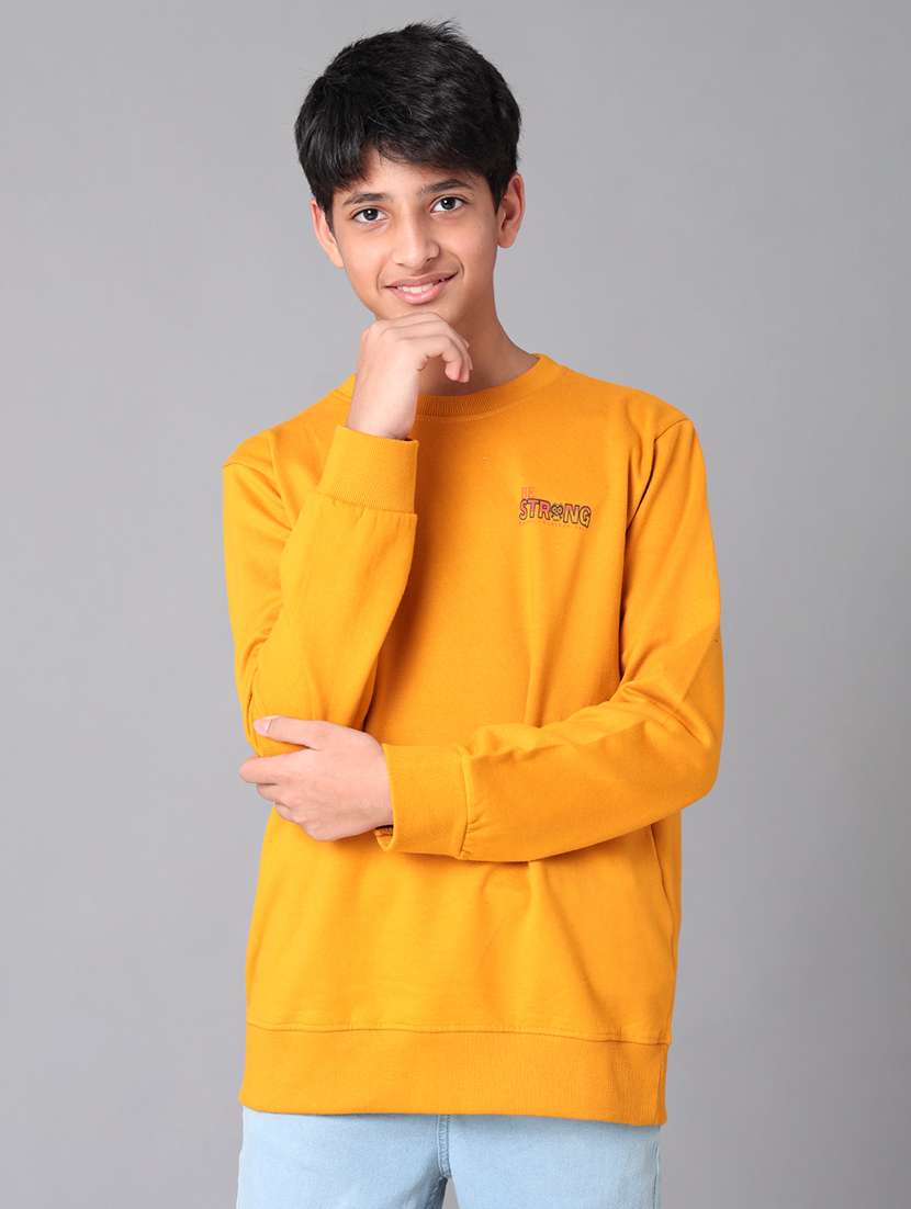 - Choose among the yellow color range of comfortable style of sweatshirts suitable for a sea of occasions that young boys will love to wear.