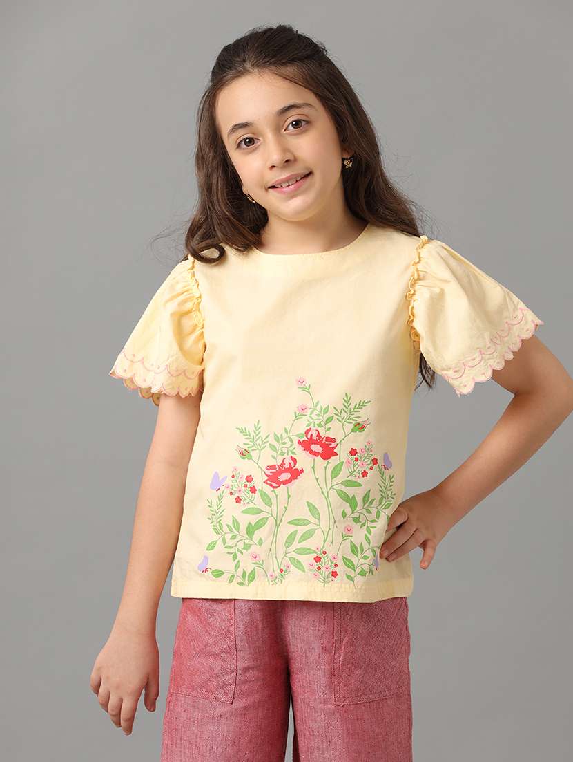 - » girls round neck floral printed regular tee