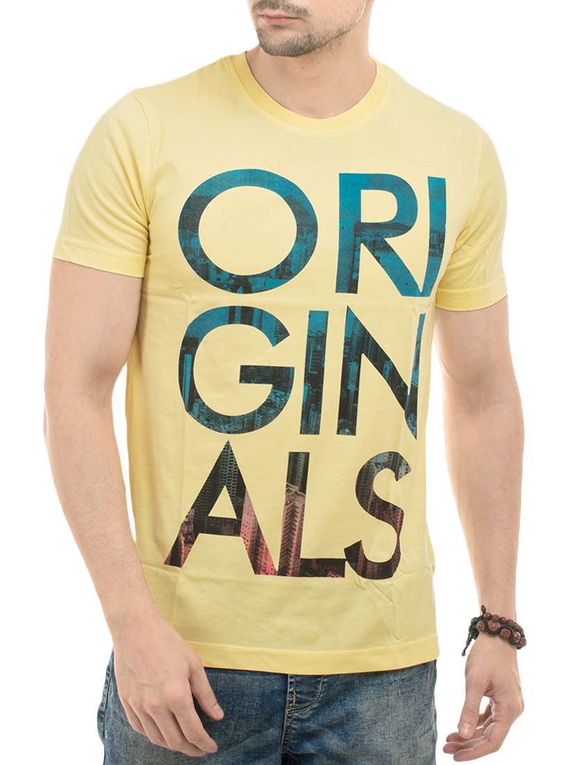yellow cotton front print tshirt