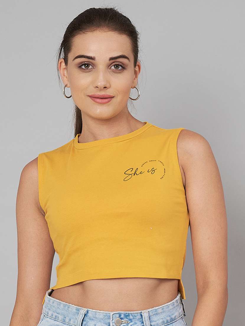 - » women printed round neck crop top