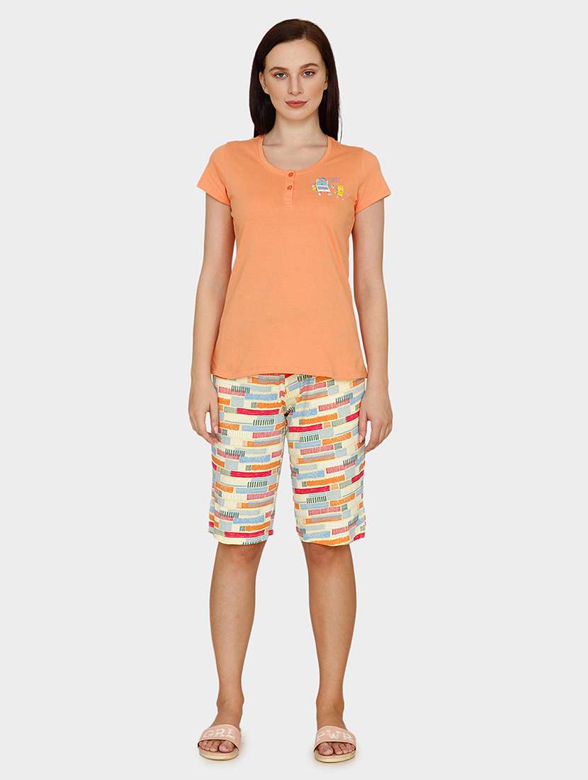 - » round neck printed nightwear shorts set