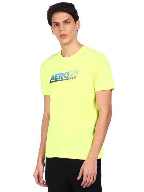 - » neon green chest-printed t-shirt