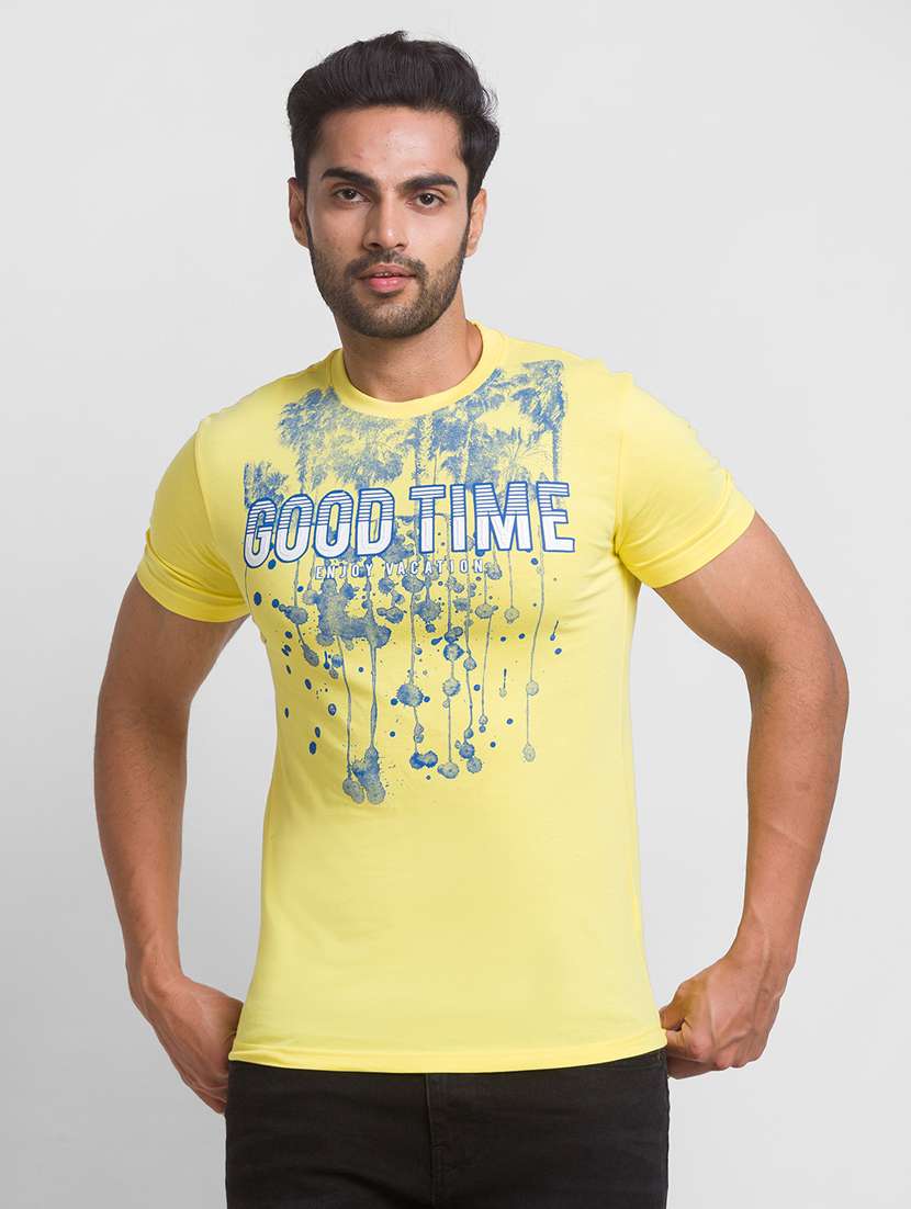 - » yellow chest-printed t-shirt