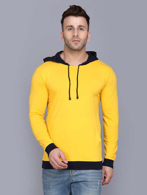 - » yellow color block cut & sew hooded t-shirt